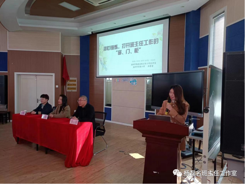随着授牌仪式的结束,学员代表郑慧智带来了自己的心得发言《潜心锤炼,打开班主任工作的“窗、门、柜”》,郑慧智讲述了自己的成长历程,她说在专业成长的道路上,若能得到良师益友的指引,将会使我们获得很大的进步。杨磊名班主任工作室这个平台为老师们创造了更多学习、锻炼、提升自我的机会,她也会在为期两年的学习中更加努力向前。