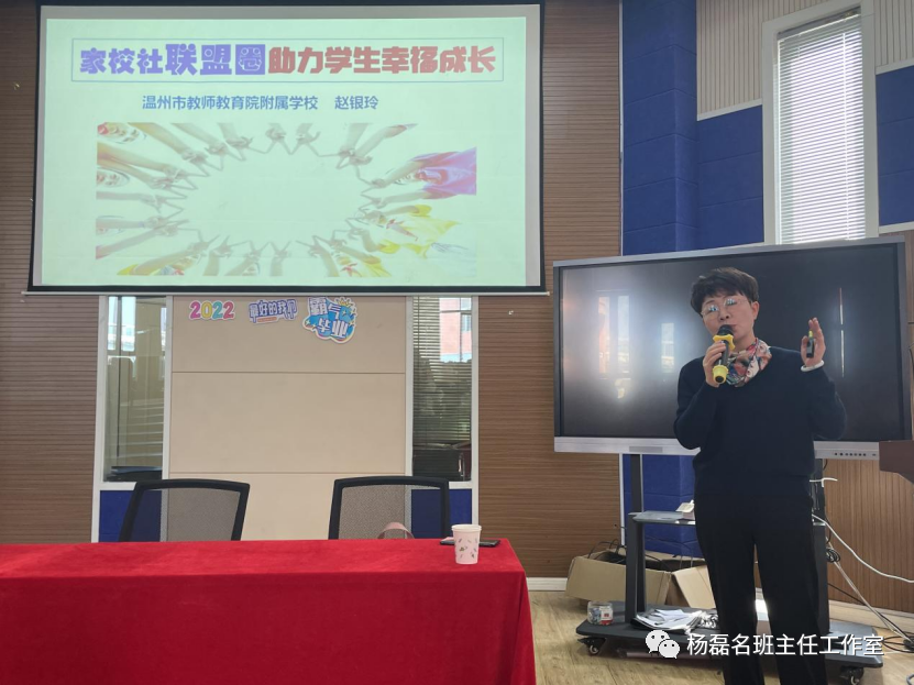 随后,赵银玲老师为众人带来讲座《家校社联盟圈助力学生幸福成长》,通过深入浅出地讲解,为众人讲述了班主任如何做好校内教育力量的联络员,她认为学校是教育的第一线,要让校内人人同心,事事育人;家庭是孩子生成的摇篮,家校联手,形成合力,是孩子成长的福音,做为班主任要做好家长管理团队的指挥员,开好家长好,组建家委会,利用学校、家庭、社会的力量,让学生更好的成长,在座的班主任受益匪浅。