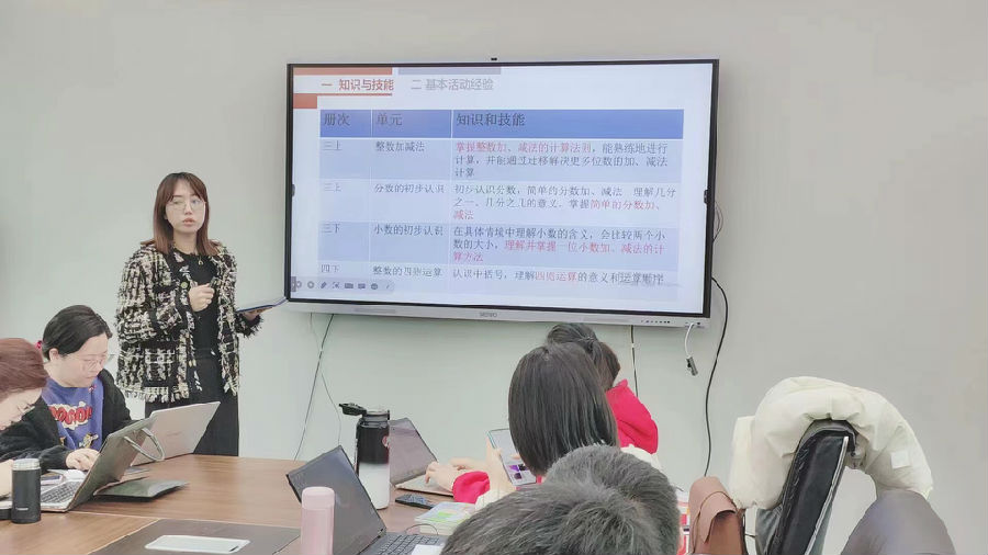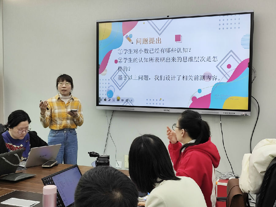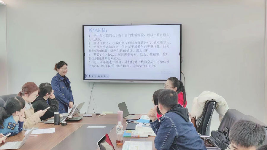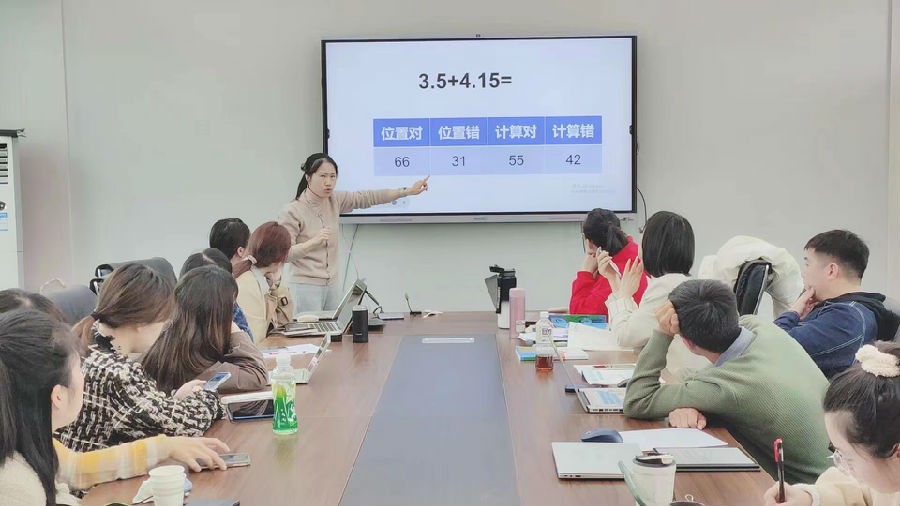最后,施优艳老师给大家带来了《小数的加减法》课例设计。通过错例引发学生思辨,借助多元表征加深算理的理解。夏老师针对其设计提出了宝贵的建议,如何将本节课的重点做“厚”,使得课堂更为扎实、灵动。