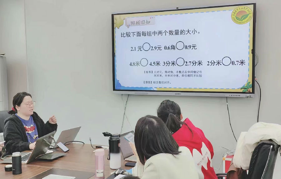 3月21日,温州市夏明燕名师工作室在永嘉县港头学校举行了以“真实情境下的课堂导入教学”为主题的教研活动,全体成员就《小数的初步认识》以及《小数的加减法》两课的相关展开了讨论学习。