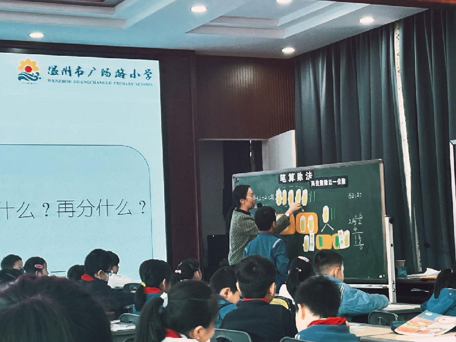 最后温州市名师夏明燕老师以《口算除法》教学为例,作关于《单元整体视角下,素养新课堂实践》的精彩讲座。夏老师的讲座凸显学生主体,从“学什么”“怎么学”为导向,强调我们的课堂环节设计应从呈现学生真实思维现状开始,以主动思考为起点,以倾听质疑为支点,感悟学科本质,以单元整体视角的前端分析和素养内涵视角的目标定位为导向,让我们的常态课堂走向素养导向新课堂。