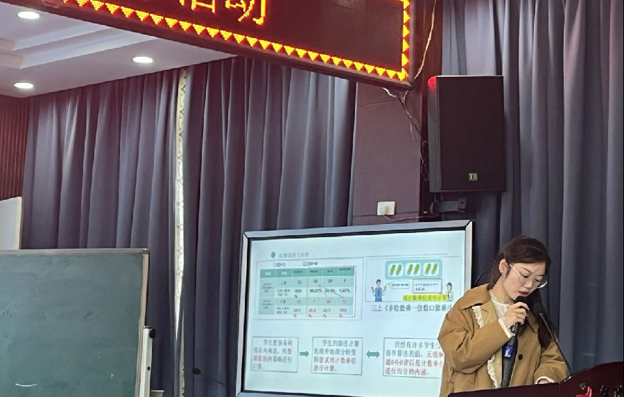 随后,乐清知临寄宿学校的郑瑶珍老师和永嘉翔宇小学的陈周培老师分别从跟大家分享了她们的观点汇报《除数是一位数的除法》单元教材比较分析和知识本质分析。郑瑶珍老师从课标要求入手,进行了教学现状分析,通过不同版本的教材对比分析,对课堂教学的有效实施起到了指导性意义。陈周培老师向大家展示了除法的历史演进脉络、除法运算的策略和除法“标准”算法形式,从本源上深度解析了除法竖式为何不一样,让大家感受到了数学文化历史的博大精深。