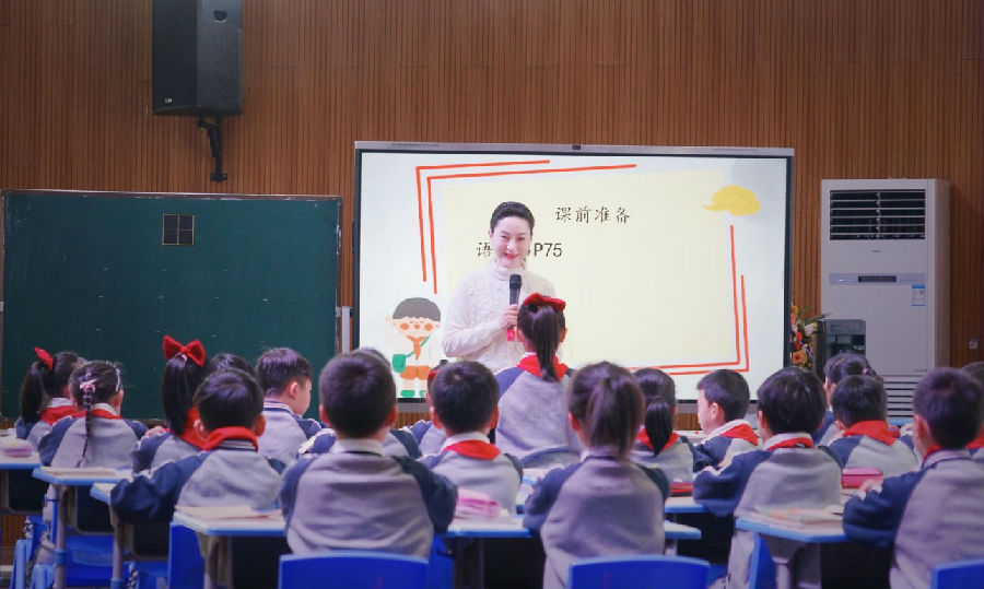 第一节课,温州市新田园小学的周璐老师执教《难忘的泼水节》。周老师用盲盒游戏趣味导入,通过创设“招募小小播报员”的情境为学生搭建学习的支架。她的课堂有趣、有味、有情境,引领学生不断回归文本,在想象中将自己沉浸于傣族泼水节的欢乐气氛,感受傣族人民对总理的欢迎和热爱。学生们在读中悟,读中思,深切感受到了周总理和傣族人民心连心的鱼水之情。