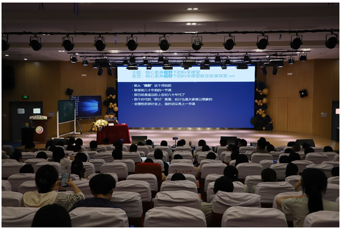 下午,全国著名特级教师章鼎儿老师为与会的老师带来《核心素养视野下的科学新课堂》专题讲座。章老师从“视野”一词入手,深入讲解了《昼夜现象告诉了我们什么》一课,思考什么是有教学价值意义的?再以《空气又重量吗》这一课例讲解提高科学教学内涵,鼓励科学老师们进行科学课堂教学改革探索研究。最后张老师以《观察一棵树的年轮》这一课例,与老师们交流互动,引导学生提出学生自己可以研究的问题。章老师的讲座发人深省,醍醐灌顶,现场的科学老师们收获满满。