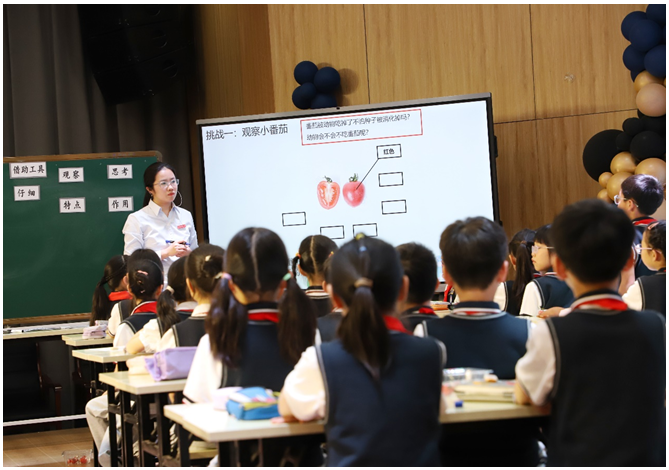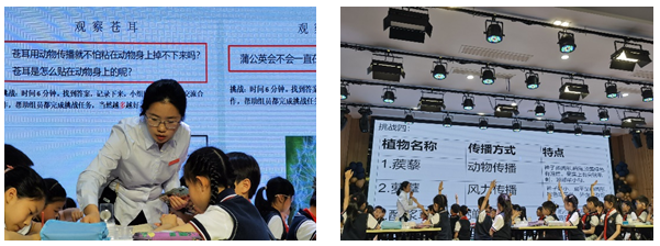 第三节课是由瓯北第三小学的邵碧慧老师带来的《种子的传播》。邵老师通过课前调查,整理学生对种子传播的疑问。从问题入手,观察不同植物的特点,并思考它们的作用,通过梳理观察结果,引导发现植物种子结构与功能相适应的跨学科概念。最后的环节通过植物的传播方式思考它可能具有哪些特点,孩子们踊跃举手,纷纷提出自己的想法,课堂氛围热烈。
