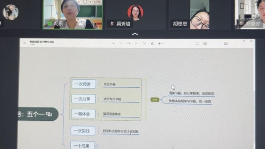 活动最后,工作室导师胡乐对本次读书分享活动给予了高度评价。她指导工作室成员在应用跨学科主题教学时,要明确两大整合,从不同的视角出发,强调基于主题的教学整合和基于教学的策略整合,而这两大整合的关键都在于基于真实情境,设置真实任务,搭建学习支架。最后,她提出“五个一”,希望成员们以本次分享活动为基础,制定长期学习计划,真正实践跨学科主题学习设计,拓宽认知边界,为教育赋能。