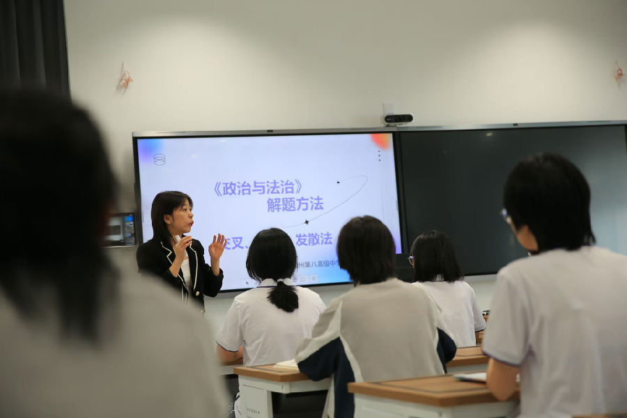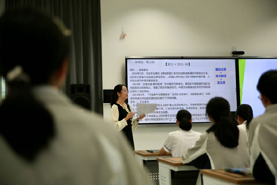 针对当前课改热点“开放性试题”的教学应对问题,本次活动还开展了专题研究活动。17日上午,进行开放性试题解题指导课的课堂教学展示和课例分析。工作室学员、文成中学赵若伊老师以2024年6月浙江高考真题为例,以学生解析命题特征、读取试题信息、评价同伴答案、现场答题演练四部曲开展解题指导。温州市第八高级中学祝天和老师以“交叉、互动、发散法”解密《政治与法治》模块开放性试题的解题逻辑。浙江省教坛新秀、浙派名师培养对象、市“孵化研修”学科指导师团队成员、苍南中学叶兰留老师以《政治与法治》第九课“全面推进依法治国的基本要求”为学科内容载体,以“建设清朗网络空间”为话题,构建了建网篇、净网篇、警网篇三个环节,对建议类、撰写演讲稿类开放性试题进行了解题指导。