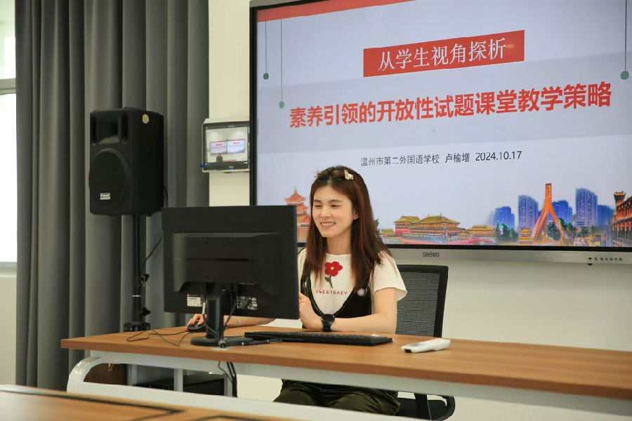 评课后,市“孵化研修”学科指导师团队成员、温州市第二外国语学校的卢榆增老师作《从学生视角探析素养引领的开放性试题课堂教学策略》讲座分享,从命题、学生作答分析、答题优化三个角度给出了高度实用的方法与建议。市“孵化研修”学科指导师团队成员、平阳县兼职教研员、鳌江中学郑奕奕老师作《从教师视角探析素养引领的开放性试题课堂教学策略》的讲座分享,围绕开放性试题的特点、开放性试题的价值、开放性试题的应对策略三个角度予以了深刻的分析。