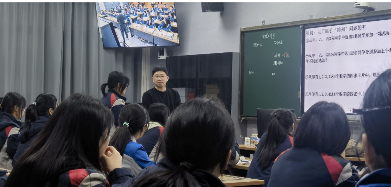 在研讨课环节,教师们展现出扎实的教学功底和创新的教学方法,通过精彩的课堂互动,激发学生们对数学学科的浓厚兴趣,为在场观摩的教师们提供了诸多教学新思路。龙湾中学的缪克锚老师带来《组合与组合数》,首先通过四个引例的不同情境出发,让学生判断是否属于 “排列” 问题,这种方式既能引导学生回顾已学知识,又能自然地引出本节课的主题 —— 组合,有效激发了学生的学习兴趣和探究欲望,为后续教学奠定了良好基础。其次,教师精心设计了三道例题。例 1 以平面内点的问题为载体,分别计算有向线段和线段的数量,让学生直观地感受排列与组合在实际问题中的差异;例 2 从人员抽取的角度出发,设置不同条件下的抽法计算问题,进一步加深学生对组合数计算的理解;例 3 及其变式通过数字卡片组成不同位数的数,不仅巩固了排列组合知识,还锻炼了学生的思维能力。这些例题由浅入深、层层递进,涵盖了组合与排列的多种应用场景,有助于学生逐步掌握核心知识。