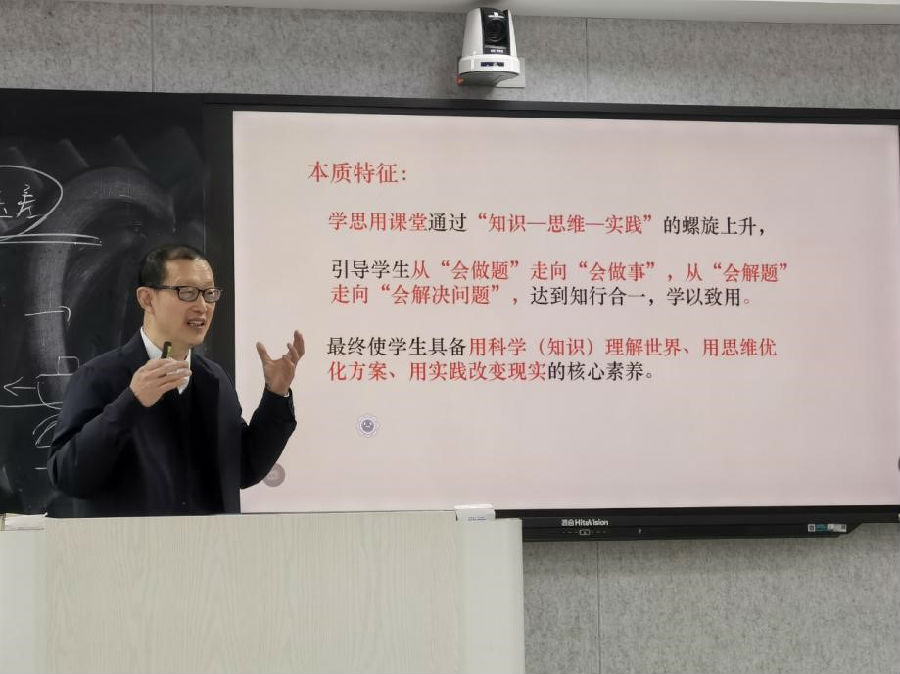 活动的最后,来自温州市南浦实验中学的浙江省特级教师、正高级教师薛仕静老师带来了题为《科学核心素养导向的“学思用课堂”构建与实践》的讲座,薛老师薛老师针砭时弊,尖锐地指出当下中考复习“只学不用”、“只学不思”、“学思用割裂”的现状。为老师们就探究型、项目型、实验型、模型型等多种类型复习课如何依托“学思用合一”导学案系统地高效地复习找到了解决的路径。