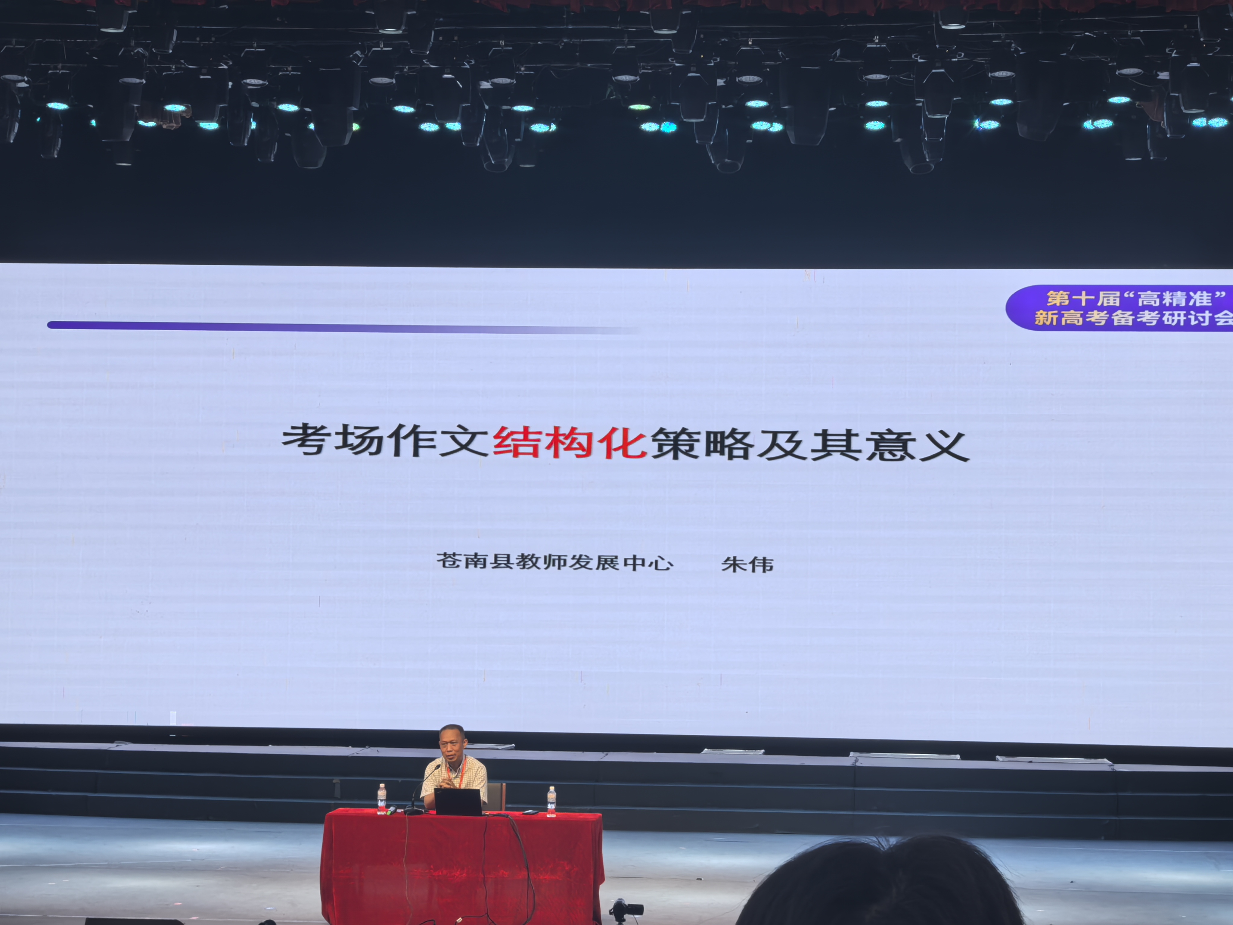 7节名师示范课,7次专家评课,7场大小讲座,学习内容安排密集而充实。无论是授课老师还是讲座专家,都是精心准备,认真展示,给参会老师带来眼前一亮的同时,感受到思维火花的交织碰撞,促进成长。示范课聚焦语文高考试卷中的信息类文本阅读、文学类文本阅读、文言文阅读、古诗词阅读、语言运用、作文写作等重要题型,不仅展示了授课教师长期精准深入的研究、思考与实践探索的成果,还为备考提供了系统解决方案,其方法更具实操性与指导意义,极具推广价值。工作室负责人朱伟老师分享讲座《考场作文结构化策略及其意义》。