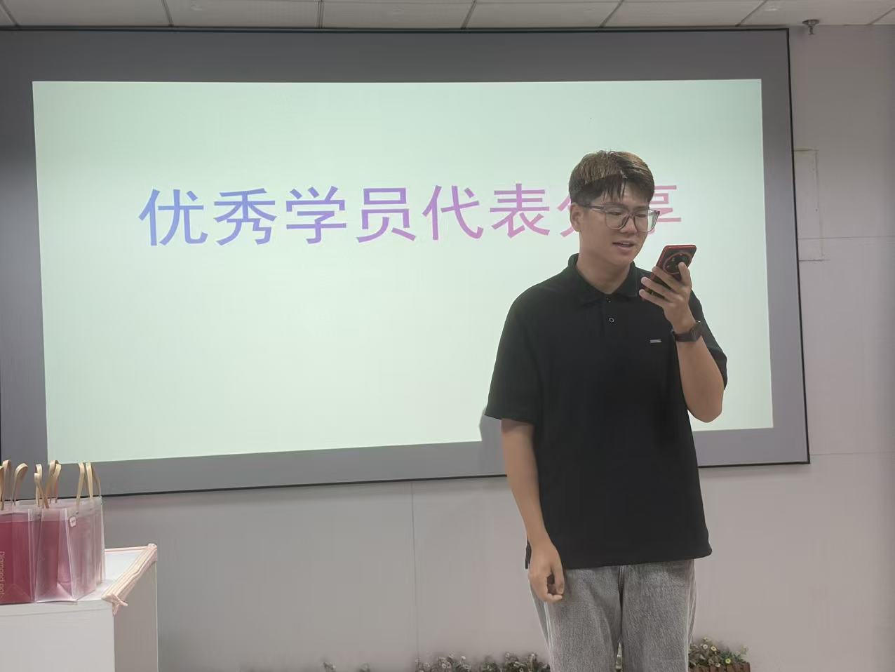 接着,三位优秀学员代表先后发言,分享了他们在工作站学习中的感悟与收获。他们深情回顾了在工作站成长的点点滴滴,表达了对导师和同伴们的感激之情,也畅谈了自己对未来教育事业的憧憬与规划。