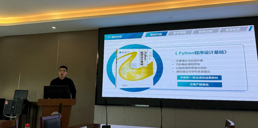 张灿老师在《WPS图表的使用》说课中,将“先学后教”思路贯穿全程:学生通过微课、问卷和学习任务单完成前置自学,再借助ChatExcel快速生成可视化图表。任务数据取自“手机使用时长”,AI辅助分析,既训练图表技能,又引导学生反思健康用机,实现知识、能力与素养三线并行。潘康妮老师《CSS弹性布局——智慧步道大屏的设计与制作》的说课以真实大屏需求为切入点,采用“高效教学+自主探究”双轨并行策略,重构岗课一体项目;同步嵌入实时互动评学系统,实现全过程、多维度数据采集与反馈,凸显信息技术深度赋能课堂的思路。张良老师在《AJAX异步请求——数智乡村民宿APP注册页交互》中展示自研批改程序,秒级反馈代码错误;将赛事项目转化为教学任务,学生完成“注册-校验-提示”完整闭环,配合三维度增值评价,清晰呈现岗课赛证融合路径。