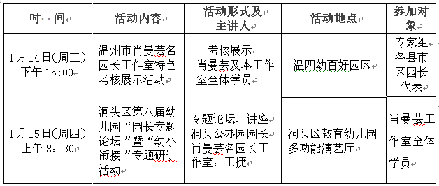 经研究,决定举行温州市肖曼芸名园长工作室特色考核展示活动以及幼儿园“园长专