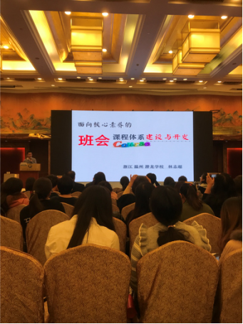 同样奋斗在一线的温州龙港潜龙学校的特级教师林志超,则作了《面向核心素养的班会课程体系建设与开发》报告,把班会课当作课程建设与开发,以引入设计的巧妙化、体验活动的生活化、实践内容的现场化、困难选择的最佳化,四个场景,打造更立体更贴近学生生活的班会课, 真正做到了教育教学中教师主导与学生主体教学理念。