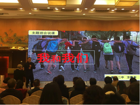 在座的班主任们用热烈的掌声迎来了全国各地六位优秀班主任关于“立德树人,培育中小学生社会主义核心价值观”主题班会的说课展示。我们看到了邢艳老师带来的视觉享受——《你是我心中最美的风景》,感悟到了陈长海老师交给学生关注生活平凡又伟大人物的生活哲理——《向城市美容师致敬》,倾听了陶红梅老师那一阵阵校园中《最美的声音》,明白了周红老师告诉我们校园中应该学会《文明交往 拒绝欺凌》的相处之道,学会了任国清老师教我们的《用思想感知世界,用智慧开启未来》的自我提升方法,还在方海东老师的引领下,认识自我,认识集体,懂得什么叫”我和我们”。六位优秀的班主任用他们独有的智慧和魅力给我们带来了六场独一无二的主题班会!