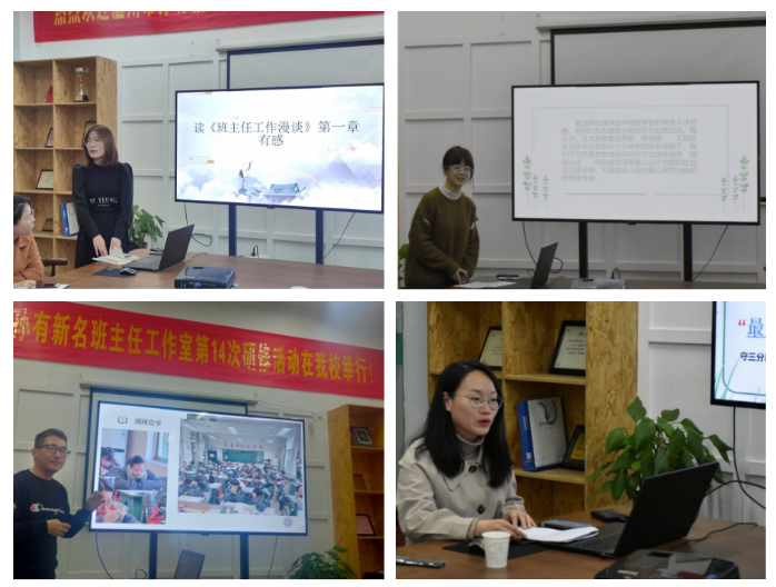 首先由何丽丽老师分享读《班主任工作漫谈》后的感受,她表示每位老师都应该做出转变,对工作不抱怨,每个人争当班主任。她从心理问题学生切入,认为班主任应该关注学生的细微动向,主动和问题学生进行深入交流。