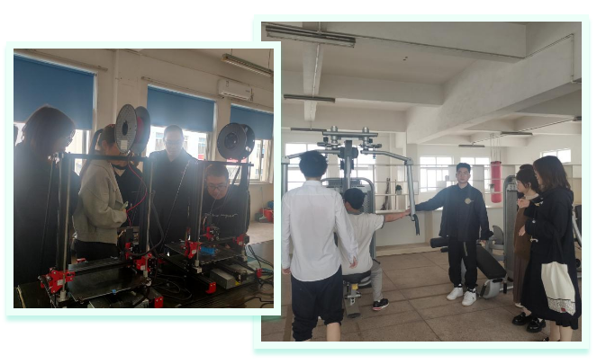 在午休的空闲时间,校领导带领我们参观了学校的社团、教室、健身房、摄影棚、3D打印室等,我们为学校的课余丰富生活感到震撼,我们感叹永久机电学校将素质教育落到了实处。