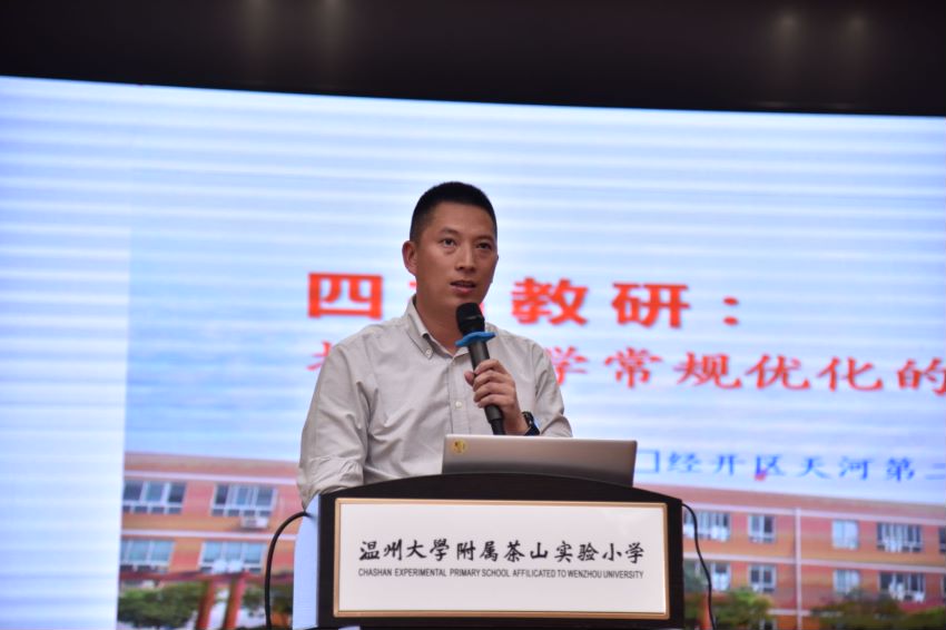 龙湾区永昌五小王崇微校长分享了“三单·五环”教研,优化备课常规的教研创新案例,经开区天河二小林爱琼校长分享了“三段·四招”教研,优化教学常规的教研创新案例,瓯海区陈庄小学柯丽莉校长分享了“三阶·六学”教研,优化学习常规的教研创新案例,经开区海城二小陈秀华副校长分享了“三课·三评”教研,优化课堂评价常规,重构课堂文化的教研创新案例。