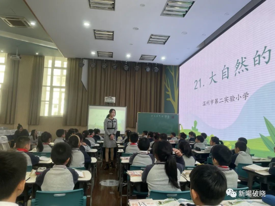 下午的第一节课由温州市第二实验小学林碧老师执教《大自然的声音》。林老师引领学生品读语言,一步步引导学生感知课文,体会作者美妙的构思,体会大自然的奇妙。林老师不仅帮助学生构建了一个丰富的情感世界,还让学生尝试构建一个深沉的理性世界。