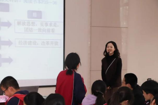 夏心怡老师以“伟大转折”为主线,将课题《历史作业本的运用》贯穿始终,带领学生理解改革开放的历史背景、必要性以及中共十一届三中全会被称为伟大转折的原因,上课激情饱满,学生学习氛围浓厚。