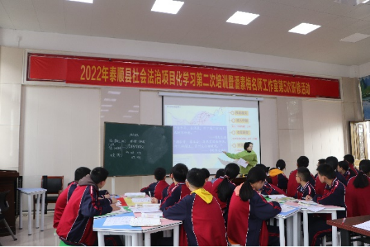 为了提高教师对历史新教材教材文本的深度理解,改变学生学习方式,深化课堂变革,5月19日-20日,工作室主持人潘素梅老师针对学员设置的三项子课题如何开展活动进行现场指导。同时,对下沉学校泰顺实验中学九年级复习课实效开展调研。此次活动分别在泰顺县第六中学、泰顺县实验中学举行。泰顺县初中社会法治研训员吴德胡、潘素梅及名师工作室成员、泰顺县社会法治学科年轻教师参加。