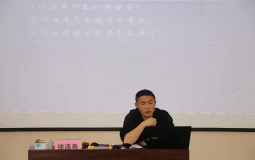 罗阳二中的徐选美老师就《作业本有效使用方案》展开汇报,徐老师谈到作业本可以使用的五个时间段,将作业本的使用贯穿新知识学习的始终,使作业本得到充分的有效使用。