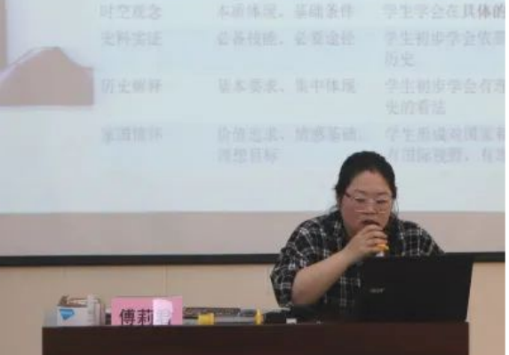 泰顺六中的傅莉君老师汇报了《核心素养视域下农村中学初中历史学材使用有效性研究》,他们小组的课题研究基于课标与核心素养同时也基于历史学科教学实效的需要,研究学材的不同价值、使用的不同方法和明确学材学习的素养。
