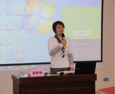 汇报结束后,潘素梅老师就课题组的汇报表达一些想法并对开课的三位老师进行了点评。潘老师强调每位老师在教学之前首先要研读课标,其次是每一节课需要设置一个关键性问题,然后是教学需要基于核心素养开展,最后是需要注意课堂呈现的方式。