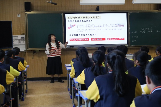 陈老师围绕着“什么是社会主义制度”“社会主义制度是怎么建立的”“社会主义制度的优势在哪里”三个问题展开教学,充分运用多媒体教学,为学生创造了良好的学习情境,层层递进,不断深入,富有趣味。