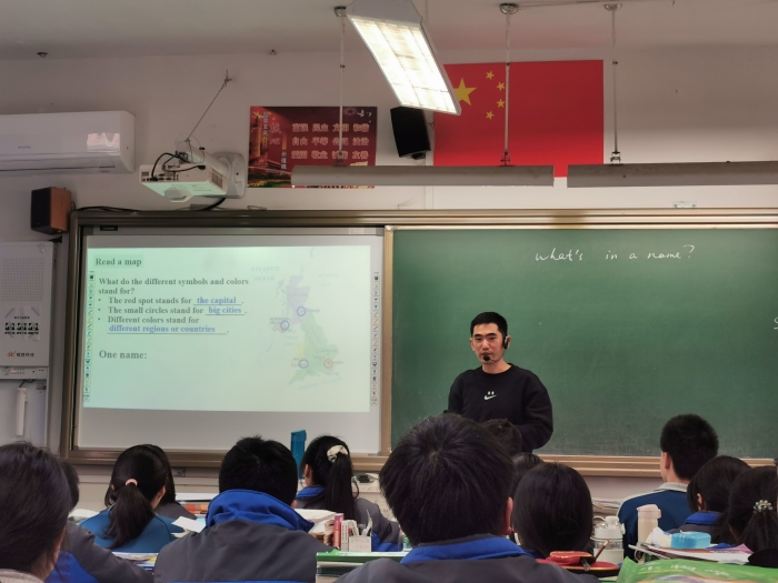 第二节课由陈世克老师在高一(7)班执教。他开门见山,通过带领学生识别地图,启发学生思考:英国为什么有这么多称呼?接着在阅读第一段时,他通过让学生自己寻找文段中的关键词并围绕关键词自主提问;在让学生根据文本内容填表自主完成英国发展史的学习后,陈老师通过一系列精心设计的问题链:“Why England can be used to refer to the country?”“What’s the present situation of UK?”“Why didn’t the writer put paragraph 4 before paragraph 2? ”“If you were a visitor, where would you start your exploration?”,启发学生对文本结构和内容进行更深层次的思考。