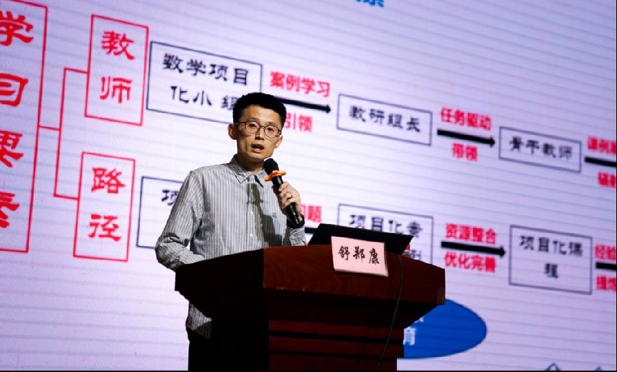 为了解决新课标理念下初中数学项目化学习这个当前教育的热点问题、难点问题,于2023年5月11-12日,在温州平阳新纪元蓝田学校举行浙江省初中数学项目化学习专题研训暨第二届温州市项目化学习博览会初中数学学科展示活动。参加本次活动的有浙江省教育厅教研室张丰副主任,浙江省初中数学教研员陈荣荣老师,浙江省各地市初中数学教研员,温州市第二届初中数学种子选手以及全省各地部分特邀嘉宾等共计300余人。12号活动分为实践交流、圆桌沙龙两大板块展开研讨交流。
