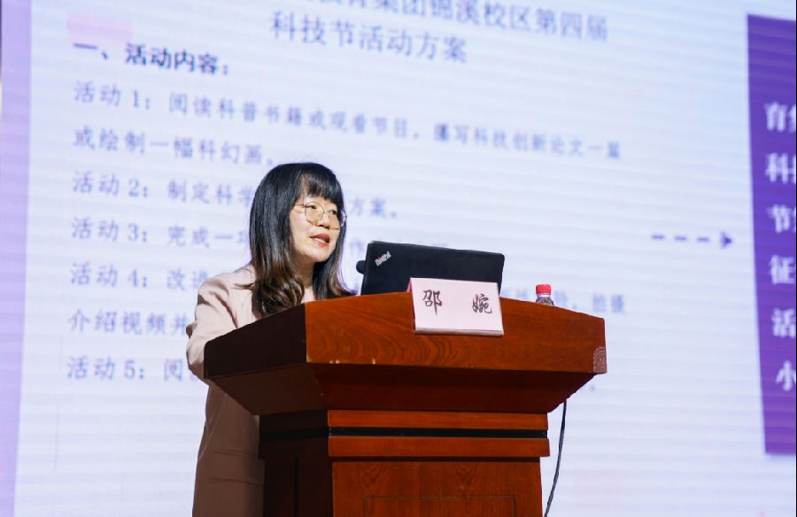 随后衢州市实验学校教育集团锦溪校区邵婉老师带来《让数学“tan”起来——初中数学跨学科项目式学习案例分享》的主题分享。邵老师从项目缘起、项目确定和实施、课例片段展示、项目评价、项目完善等几个方面来展示“探寻身边的一次函数”这一项目化活动的实施过程。最后邵老师希望有更多的老师参与到项目化课程的研究中来,大家共同交流沟通,为学生创造良好的教学实践环境。