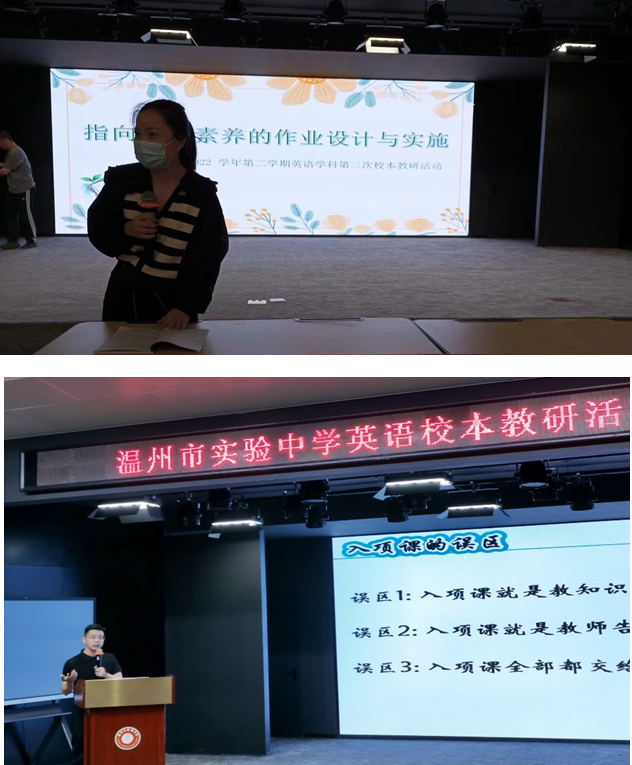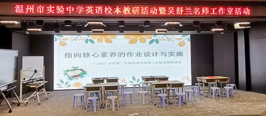 2023年5月26日下午,吴舒兰名师工作室第四期第五次活动“指向核心素养的作业设计与实施”在温州市实验中学本部中山楼405报告厅举行。实验中学英语组教师与吴舒兰名师工作室学员一同参与了此次活动。