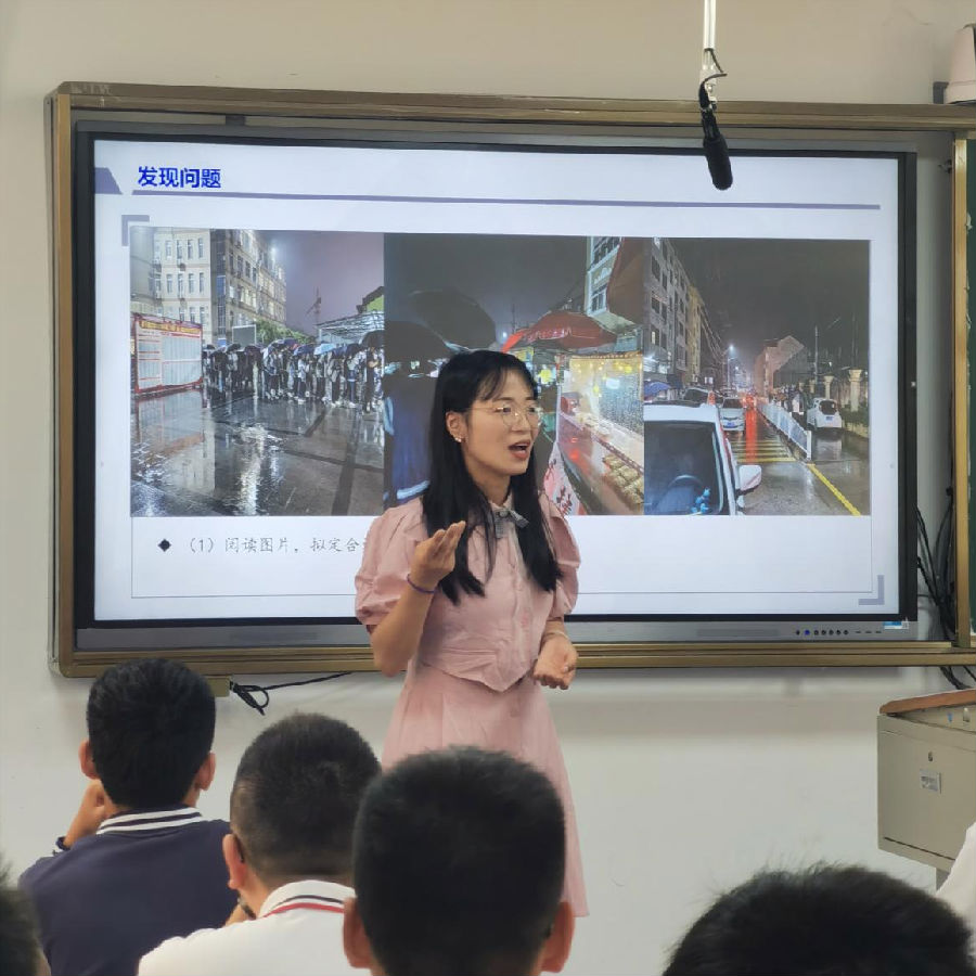 桥下镇中学的谢冰倩老师以实际生活中校园放学时段易发生的交通堵塞问题为情境,循循善诱,引导学生运用学科知识来探究这一问题可能的解决方案,并通过习题演练来进一步巩固习得内容,做到了“学为中心”,体现了指向核心素养的教学。