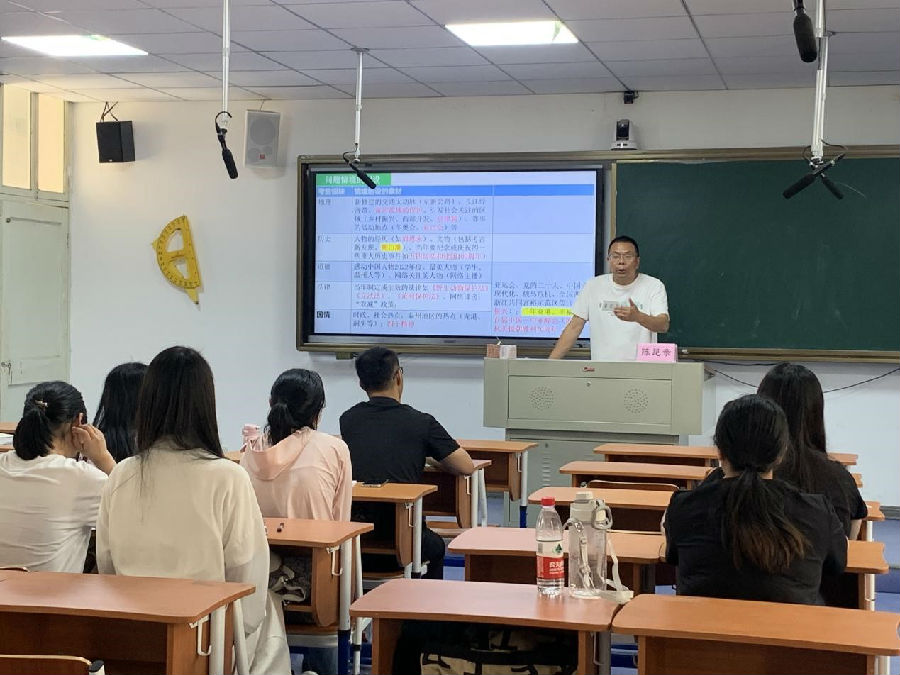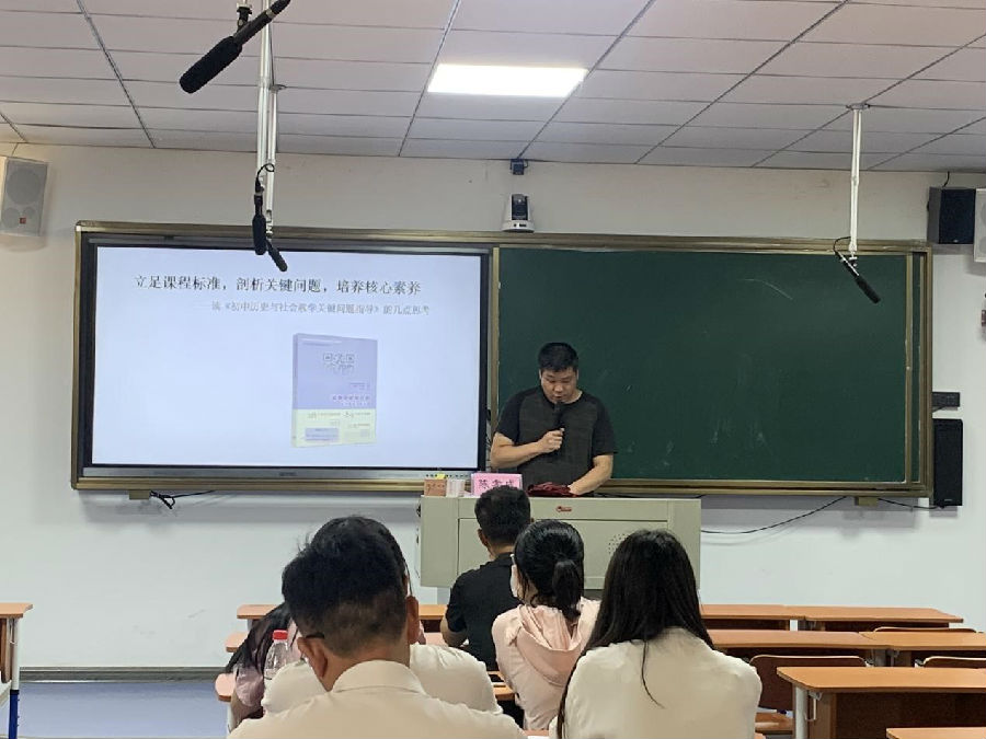 桥下镇中学的陈孝成老师分享了《历史与社会学科关键问题》一书的阅读感悟。陈老师阐述了教学关键问题的含义,指出其确定要基于空间感知、历史意识、综合思维和社会实践这四个点,提出教学问题的解决要借助综合性学习策略,并展示了实际案例来做示范。