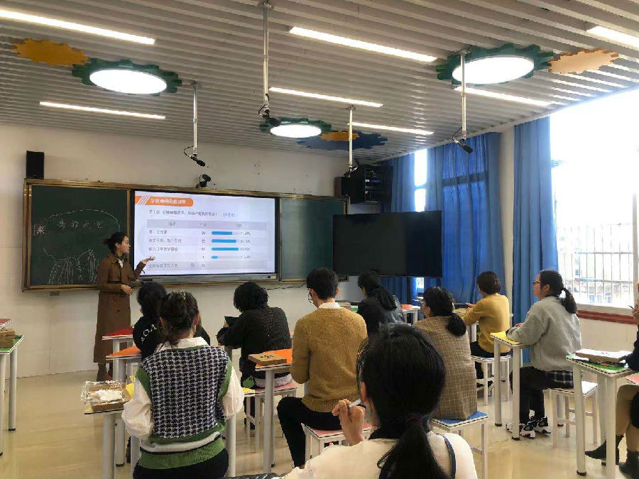 课例展示环节,龙湾中通国际学校的厉雪梅老师和三魁二小五年级的学生一起为大家献上课例《鸟的天堂》。课上,厉老师领着孩子们边读边想象画面,领略巴金在“鸟的天堂”里两次看到的不同情景;通过融词入画,理解朗读;对比中辨画,整体感知;品句入画,感悟中读等几个板块进行教学;同时联学生的生活,联已学的旧知,丰富文化内涵,让学生在朗朗的读书声中感受生命,无处不是生命。