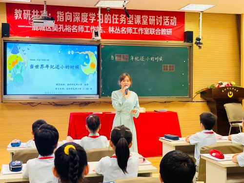 2022年5月26日,吴孔裕名师工作室和林丛名师工作室于温州市瓦市小学联合举办“指向深度学习的任务型课堂研究”教学研讨活动。一整天的研讨活动在线下线上同时进行,参与研讨的有鹿城区吴孔裕工作站全体学员、林丛工作室全体学员、瓦市小学语文教师、双潮小学语文教师和温州市吴孔裕名师工作室文成学员,实现了教研共享与共富。