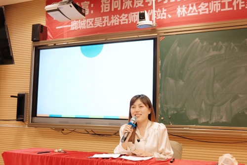 上午三堂精彩的展示课后,林丛导师围绕“指向深度学习的任务行课堂”的主题对展示课进行点评,林老师指出:精准解读要素,让深度学习明确基本方向;构建任务群,让深度学习契合认知规律;妙用审辨思维,让深度学习融入回环体系;链接生活资源,让深度学习迈向思维高阶,并提出教师应当“为创造而教”。根据“2022新课标”中调整的内容,林老师还带领学员们进行了学习。
