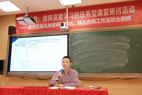 活动的最后,吴孔裕导师进行了细致入微的点评,充分肯定了四节展示课及两个观点报告的亮点,并提出了自己的思考:语文是干什么的?语文应该怎么学?任务型应该是什么样的?指向深度学习的任务型课堂应该怎么做?吴校提出了任务型课堂的几大特点:围绕聚焦主目标、分解成几个小任务每个任务有一定思维空间提高孩子思维能力。
