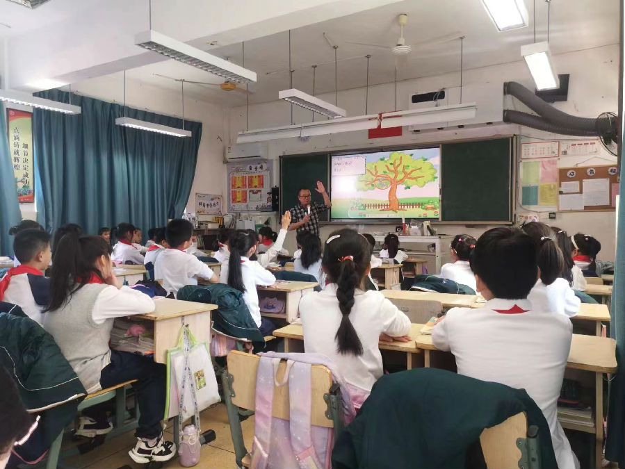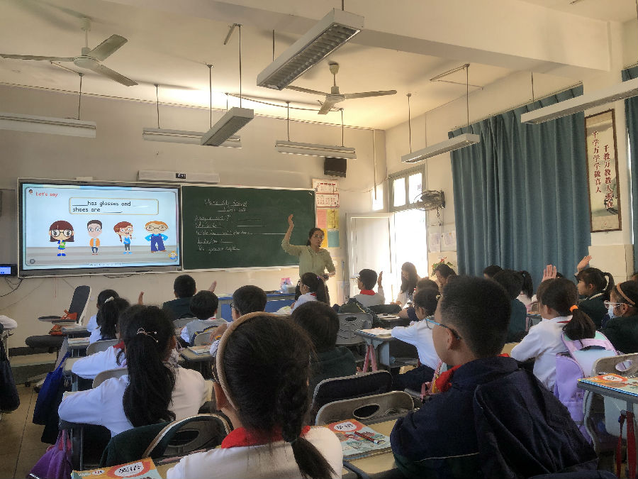 首先,苏伟老师执教PEP1Unit 4 A Let’s talk。苏老师以为Old MacDonald找农场管理员为启动任务开启本堂课教学,大大激发了学生的参与兴趣,学生在完成面试闯关的活动中,习得了本课的核心语言。苏老师有趣的教学内容将孩子们带入了动物世界,教学环节紧凑,活动指令清晰,较好的体现了英语教学版块推进意识。