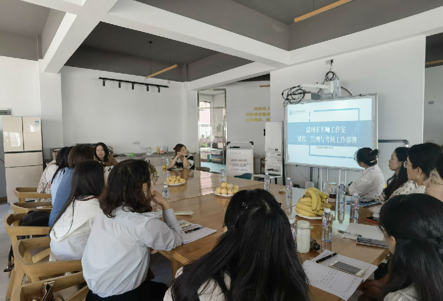 在学员们相互认识熟悉后,陈聪聪老师就工作室培养方案进行解读。陈老师给我们介绍了工作室成员的县市区分布和挑选原则,从指导学员成长、引领学校提升和助推区域发展等方面说明了工作室建设、管理与考核工作的具体部署内容。