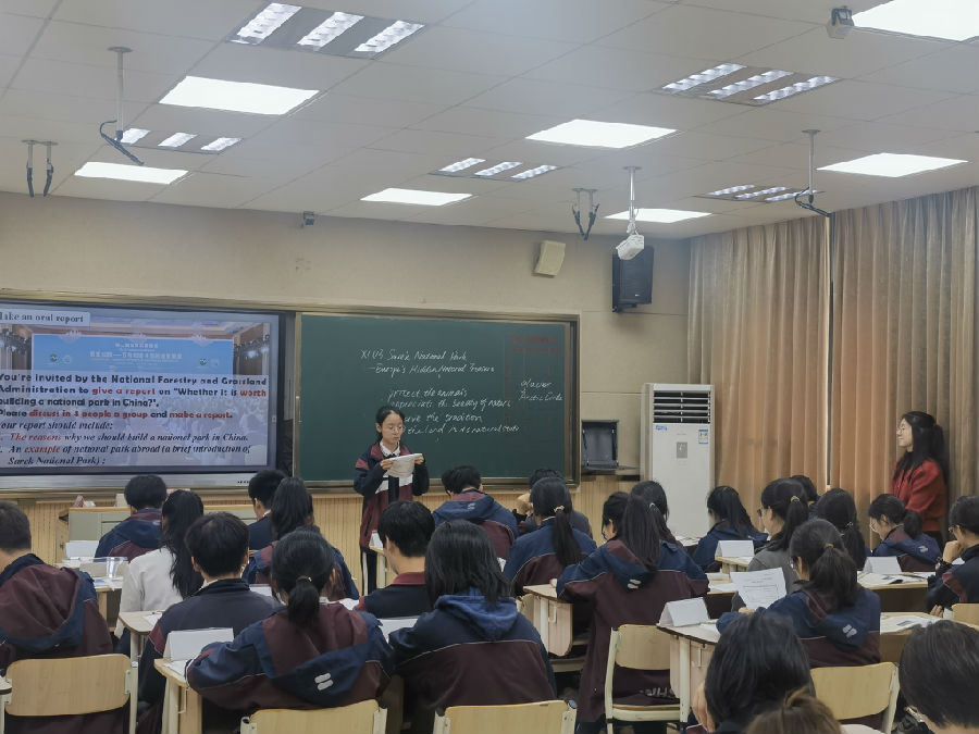 温州二高的王旭碧老师公开课为选择性必修一第三单元 Fascinating Parks的主题拓展阅读,阅读文本内容长,课题新颖,因此具有一定的挑战性。但是王老师的课整体性很强。目标清晰、设计有序、课堂活跃,既有教师的示范操作,也有学生的自主阅读。王老师以标题“National Parks: A Treasure House For Future Generations”中的treasure house和future generations为重点,引导学生关注What和Why两个方面,较为深入地剖析了四个国家公园的珍贵之处及建立的重要性,最终以future generations为落脚点,紧顾首尾两段内容解析,并将主题升华至保护星球是全人类共同的责任,呼吁同学们从自身行动做起。