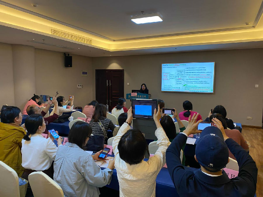 11月10日晚,来自杭州第二中学的浙江省特级教师、正高级教师赖朝晖老师为学员们带来了以《系统功能语言学视角下的读写教学》为话题的讲座。面对让老师们疑惑不解的话题,赖老师以独到的见解,深入浅出,将抽象的功能语言学内容落地,恰到好处地应用在英语读写教学实践中。会上,赖老师用多个教学实例深入分析了直白式和语法隐喻式写法的区别,也分享了在系统功能语言学视角下如何解读叙事性文本。赖老师将深奥的理论落地阐述,让与会的老师们深切地感受到其个人魅力,也对探究系统功语言学产生了一定兴趣。