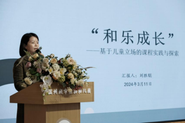 瓯海区三垟和园集团园刘胜聪园长作为瓯海区课程改革实践园代表,以《“生命成长”:基于儿童立场的课程实践与探索》为题,围绕和乐课程的构建、推进、实施与感悟四个方面进行介绍。