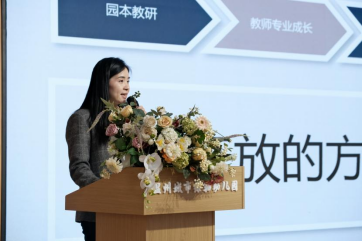 教师发展园代表——郭溪燎中佳苑幼儿园任艳雷园长就《教师专业的发展可能》的真实案例进行交流。任园长从捕捉问题、加强对话、聚焦主题、小组实践四步曲向与会人员介绍了生成性园本教研模式,并指出教师的真正学习来自于自我学习和自我建构,应考虑教师自身的反思与成长。