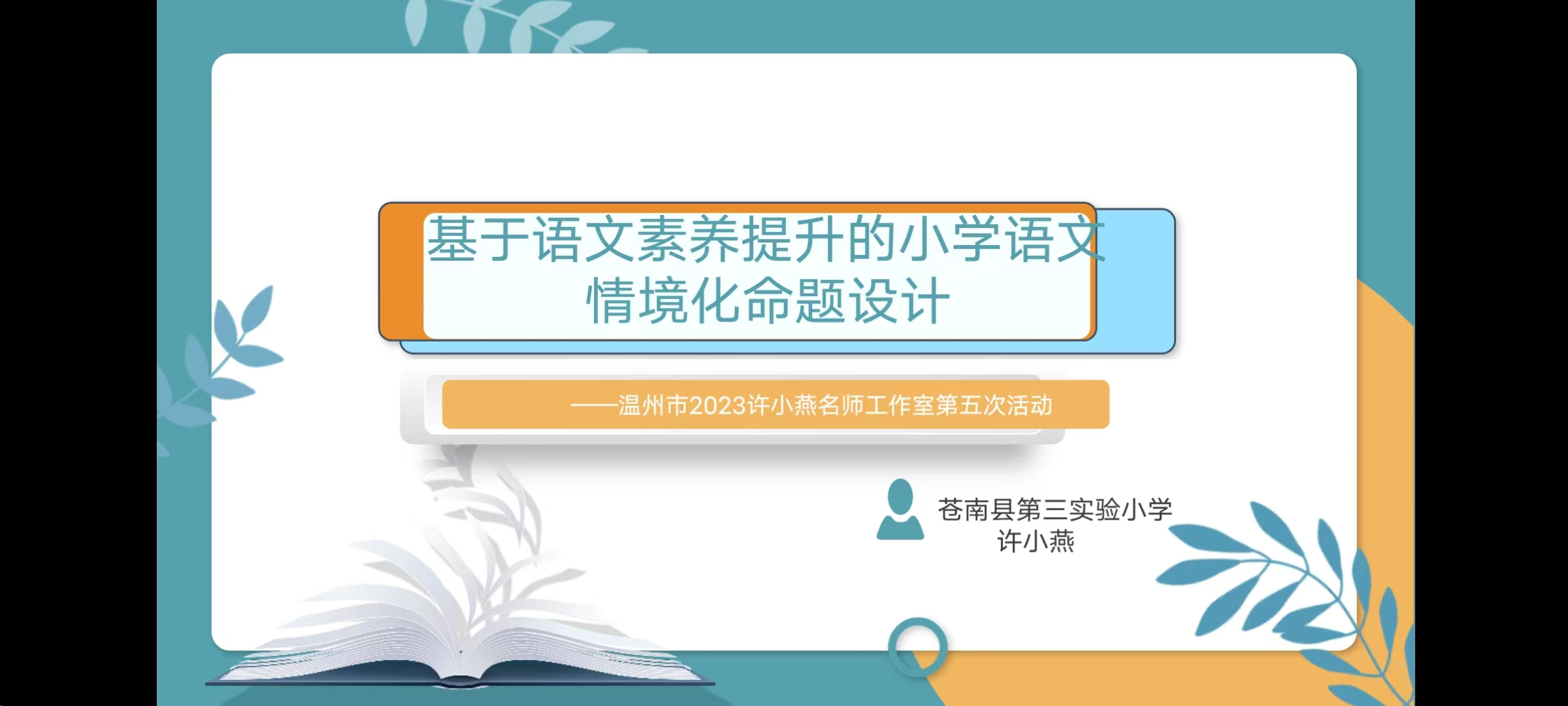 为深入学习领会2022年版《语文课程标准》精神,积极推动新课标指引下的小学语文试题命题研究,以评价促学习,改进教师教学,提升教师专业成长,2024年3月16日,温州市许小燕名师工作室成员共聚云端,开展了以“基于语文素养提升的小学语文情景化命题设计”为主题的线上学习研讨活动。共有42位老师参与了活动。本次活动包含学员命卷设计理念分享和导师讲座引领两个方面。