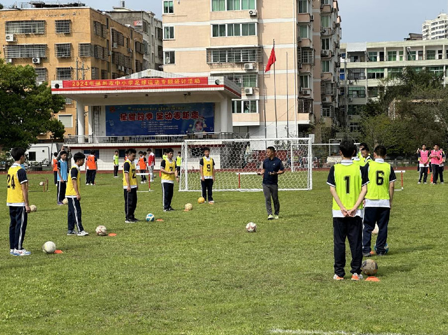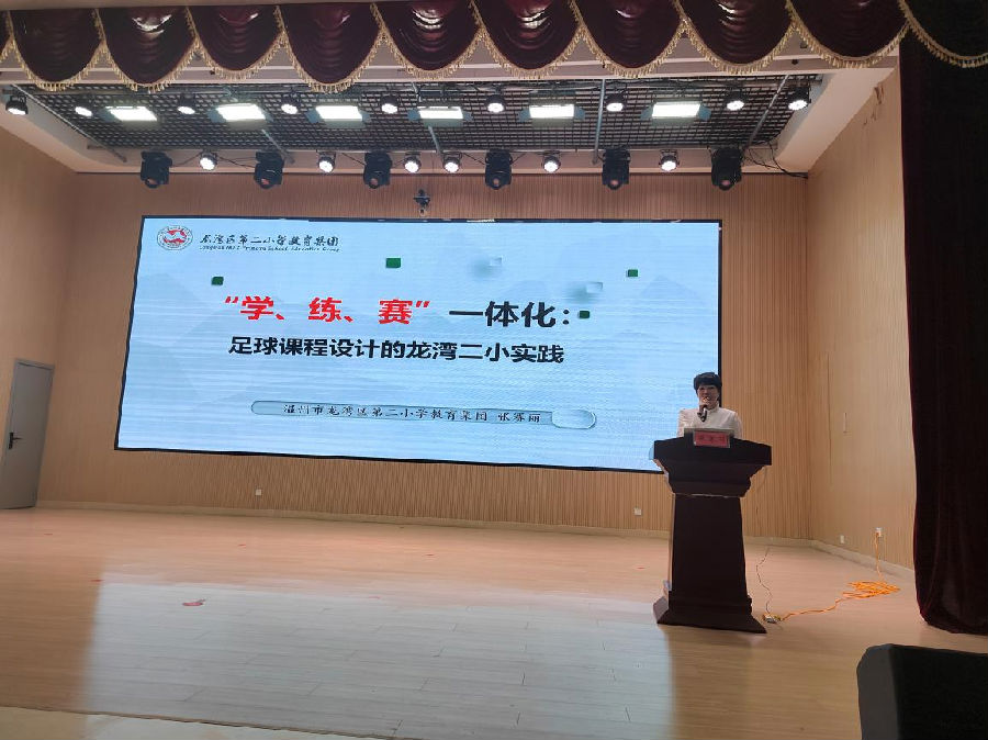 然后由曾荣名师送教工作室成员龙湾区二小的张赛丽老师等五位老师进行经验分享,他们分别从足球课程设计、社团活动和大课间开设、足球训练与管理、校园足球特色文化的创建、足球特色项目构建五个方面讲述校园足球的发展,不仅展示了自己学校所取得的成就,也为其他学校提供有益的借鉴。