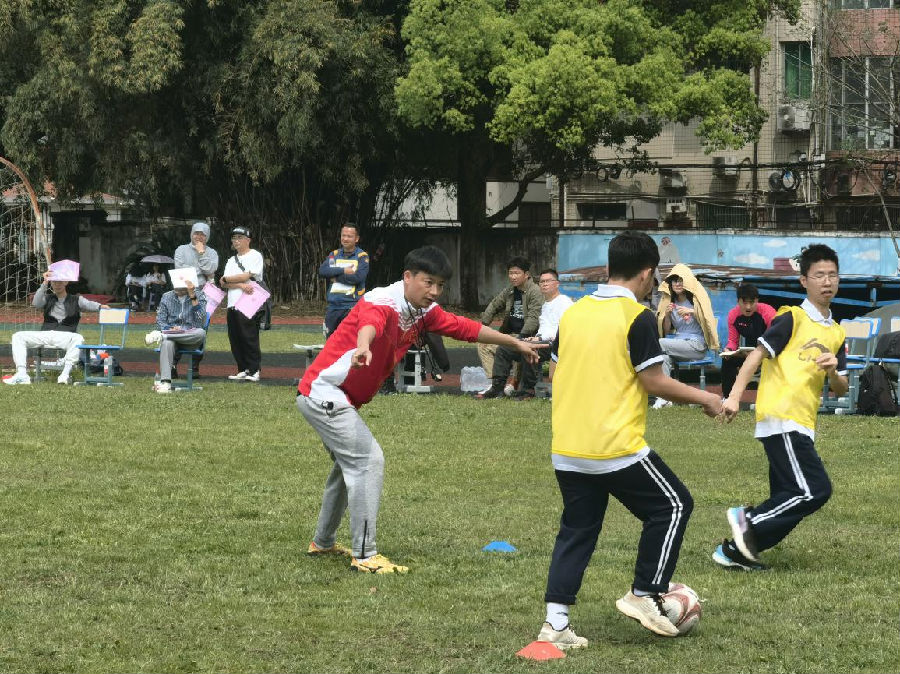 为了落实体育与健康课程标准,推进校园足球运动的发展,促进中小学体育老师课堂转型,提高体育课堂教学效能。2024年4月3日,“温州市中小学足球运动专题研讨活动”在龙港第五小学、龙港市职业中等专业学校举行,温州市曾荣“名师送教”工作室全体学员参加本次活动。本次活动上午在龙港职业中等专业学校进行,内容主要为大课间观摩、课堂展示、评课研讨等。下午在龙港第五小学进行,内容主要为开幕式、说课展示、各优秀学校经验分享、专题讲座等。