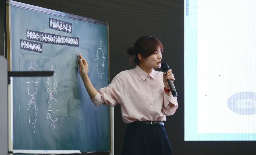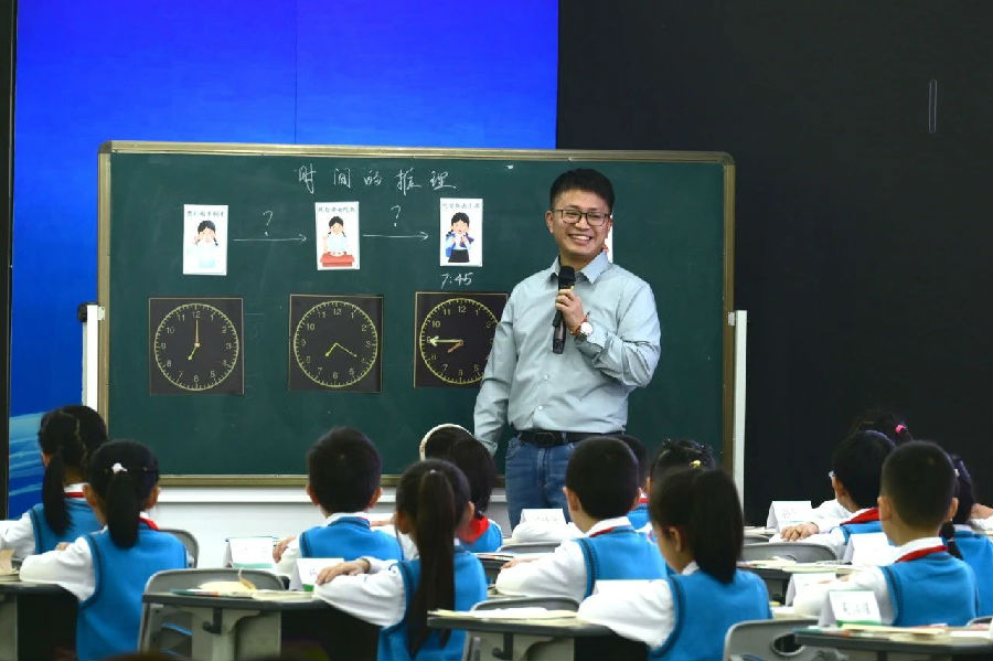 11日上午第一节课,温州市教坛新秀、瑞安市锦湖实验小学白雷老师执教《时间的推理》。白老师基于实证分析,通过前测分析了解到不同孩子对于时间的认读水平差异较大。在真实情境“小红的早晨”中,串联学习任务,展开“推理匹配”“完善钟表”“求经过时间”等一系列学习活动。整节课利用对比辨析,厘清度量本质。通过对错之间的比较,曲直之间的联系,动静之间的想象,发展了学生的量感和推理意识。